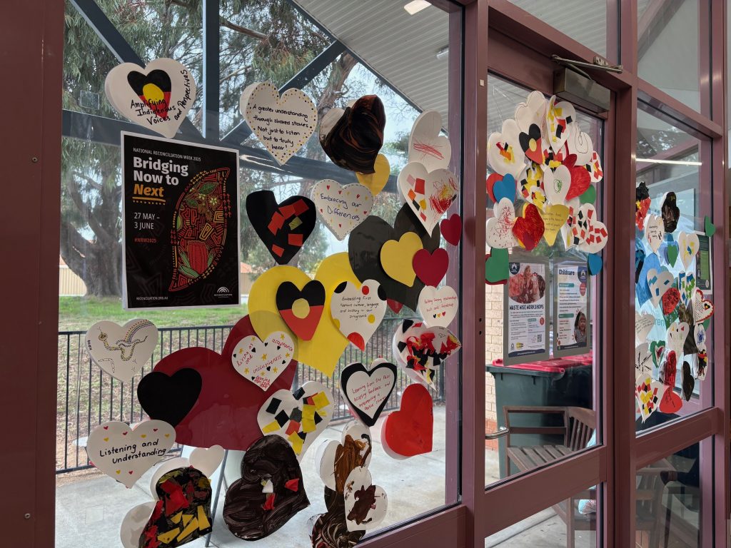 - Reconciliation Week saw a series of engaging experiences including Brekky-n-Go to bring families together over a bush-tucker inspired breakfast, featuring lemon myrtle muffins, damper with lilly pilly jam, and pepperberry mini quiches. These gatherings offer relaxed opportunities for families to share feedback and engage in conversations about reconciliation and community connection. The Sea of Hearts Initiative brought our community together in a powerful display of unity. Each heart was decorated with colours, symbols, and reflections representing personal messages of hope, understanding, and respect. The hearts were displayed on the windows at the entrance of the Centre.